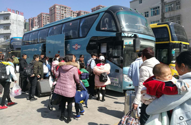 正月初十,新春的气氛逐渐淡去,各大企业已在人力资源市场上演“抢人”大戏。随着企业的开工,外地务工人员带着新一年的希望开始踏上打工的征程。这几天,春运进入“反向包车”状态,旅游大巴纷纷驶往外地,接返来绍务工人员。旅游租赁分公司为此还专门派员驻点贵州安龙与四川叙永,开展业务对接,异地承接包车,同时支援当地的春运加班,将“反向春运”进行到底。