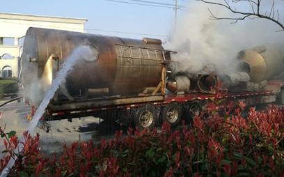 3月19日下午3:40,集亚物流基地门口望海路一辆安徽牌照的平板货车突发大火,浓烟滚滚,车上一个疑似罐体物体火势较旺,很有可能发生爆炸。